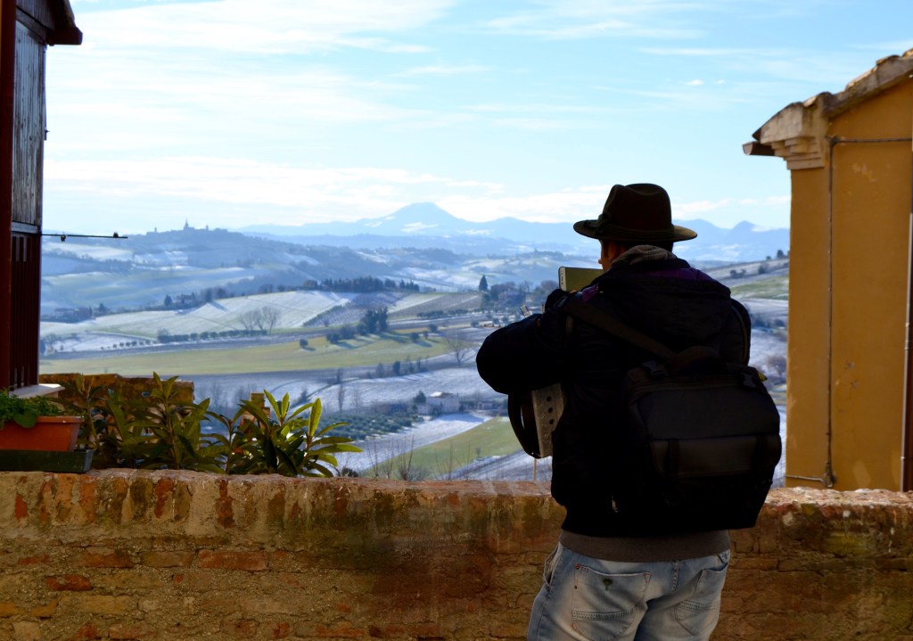 Non chiamatela “valorizzazione del territorio” per favore: ad un territorio così bello non servono chissà quali; basterebbe la cura per ciò che ancora c’è, di materiale e di immateriale. E la cura può significare anche non fare: non asfaltare ulteriormente, non edificare inutilmente. Non servono abbellimenti posticci, slogan tematici, o luminosi effetti speciali. Non servono soluzioni alla moda copiate da contesti urbani o metropolitani, dove forse hanno un senso (chi utilizza il termine flash mob sa veramente cosa significa?) Non servono semafori spenti installati in frazioni spopolate o l’ennesima rotatoria. Non serve tutto ciò, quando di fronte hai questi borghi, queste colline e queste aurore. Serve solo un diverso sguardo accompagnato dall’apprezzamento di quella bellezza semplice che i nostri antenati contadini e paesani ci hanno consegnato, ma che abbiamo dimenticato troppo in fretta.